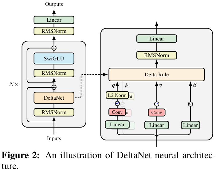 \mathbf{S}_t = \mathbf{S}_{t-1} + \beta_t (\boldsymbol{v}_t - \mathbf{S}_{t-1} \boldsymbol{k}_t )\boldsymbol{k}_t^\top