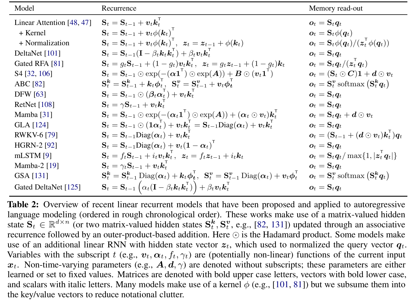 Meanwhile, a product of Householder transforms of the form (I - beta_t k_t k_t^T) can always be written in a low-rank form using the WY representation. So let us assume: